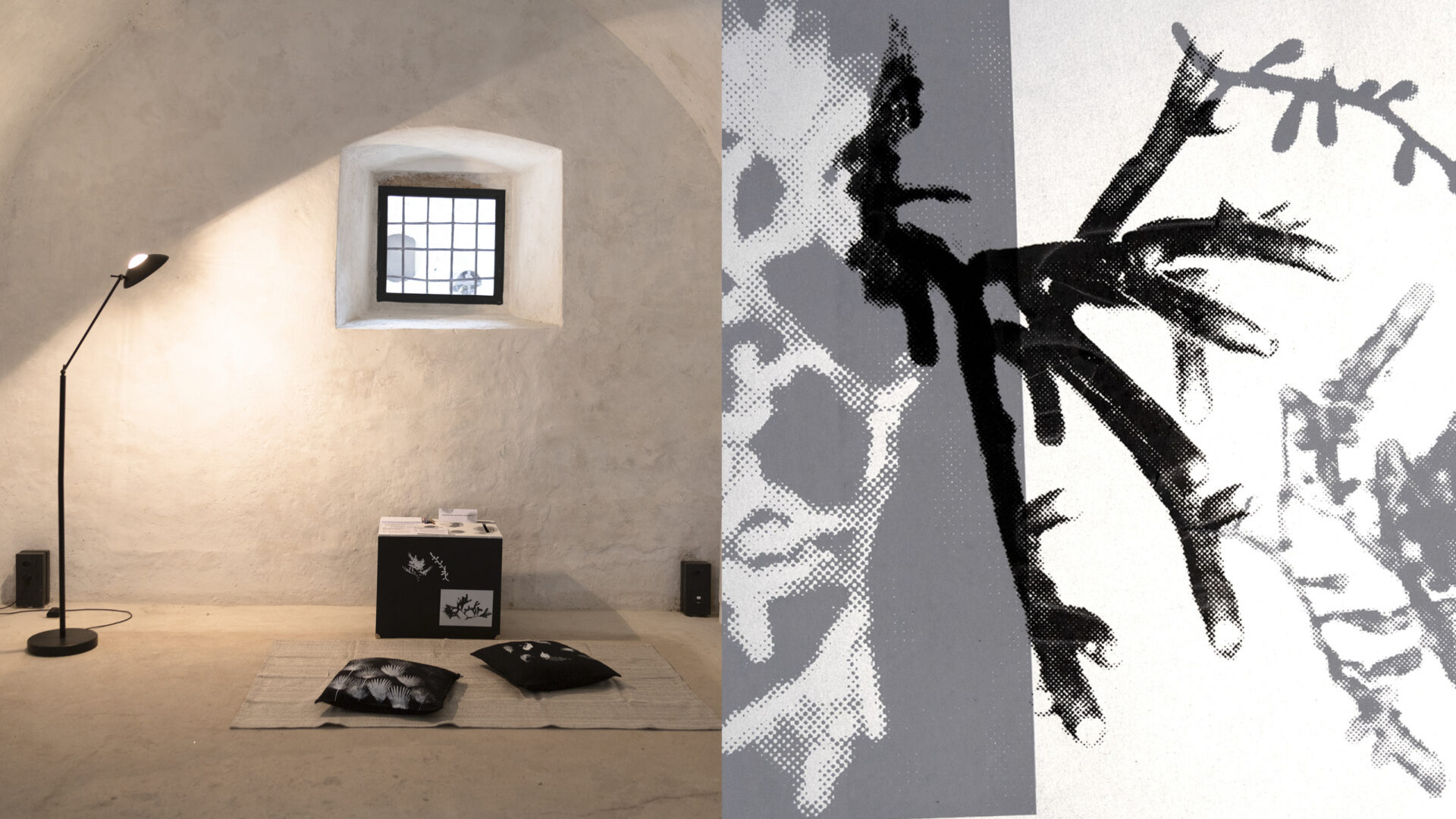 Installazione site-specific in stoffa, pietra, carta